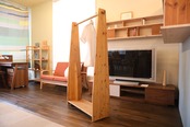 パイプもボルト&ナットも木製で仕上げ、ナチュラルさにこだわりました。