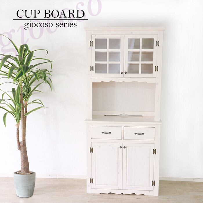 【カップボード】カントリー90㎝ 送料無料 ホワイト|カントリースタイル|北欧パイン