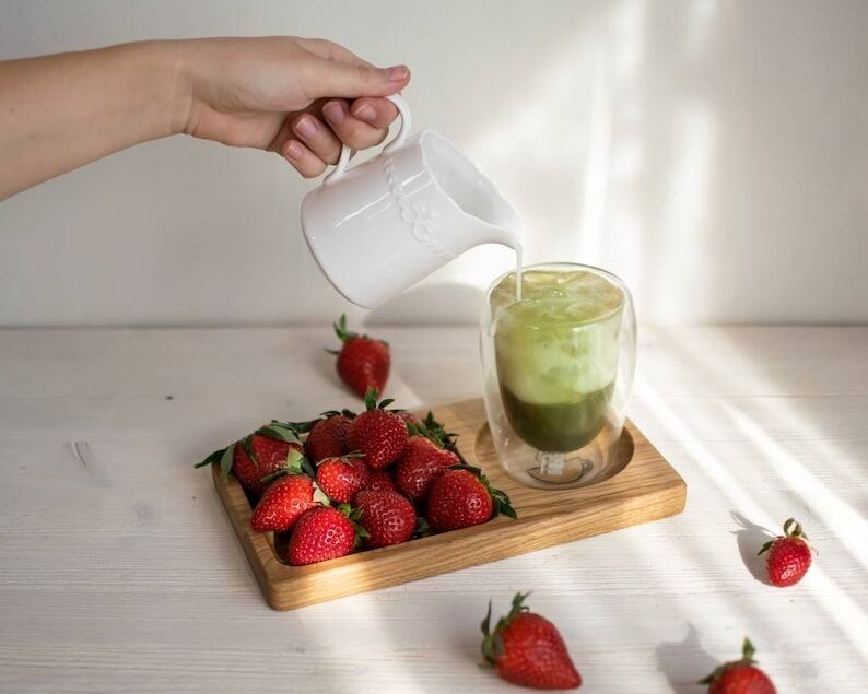 来客のおもてなしに使いやすいサイズですが、普段の朝食、間食、夜食など、あまりたくさん食べない時にも木製トレーを使うことで、おしゃれ感がアップします!